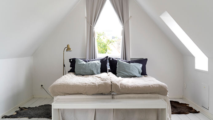 På övervåningen har vi inrett ett ljust och rymligt utrymme!
